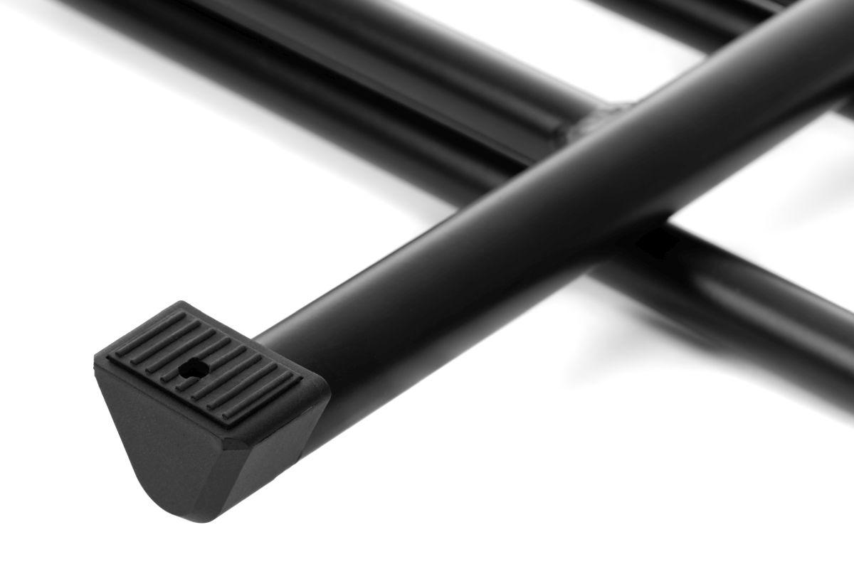 für Laufradgrößen bis 29'' und 6,5cm Breite, zusammenklappbar, rutschfeste Standfüße, versteckte Verschraubung mit dem Boden möglich