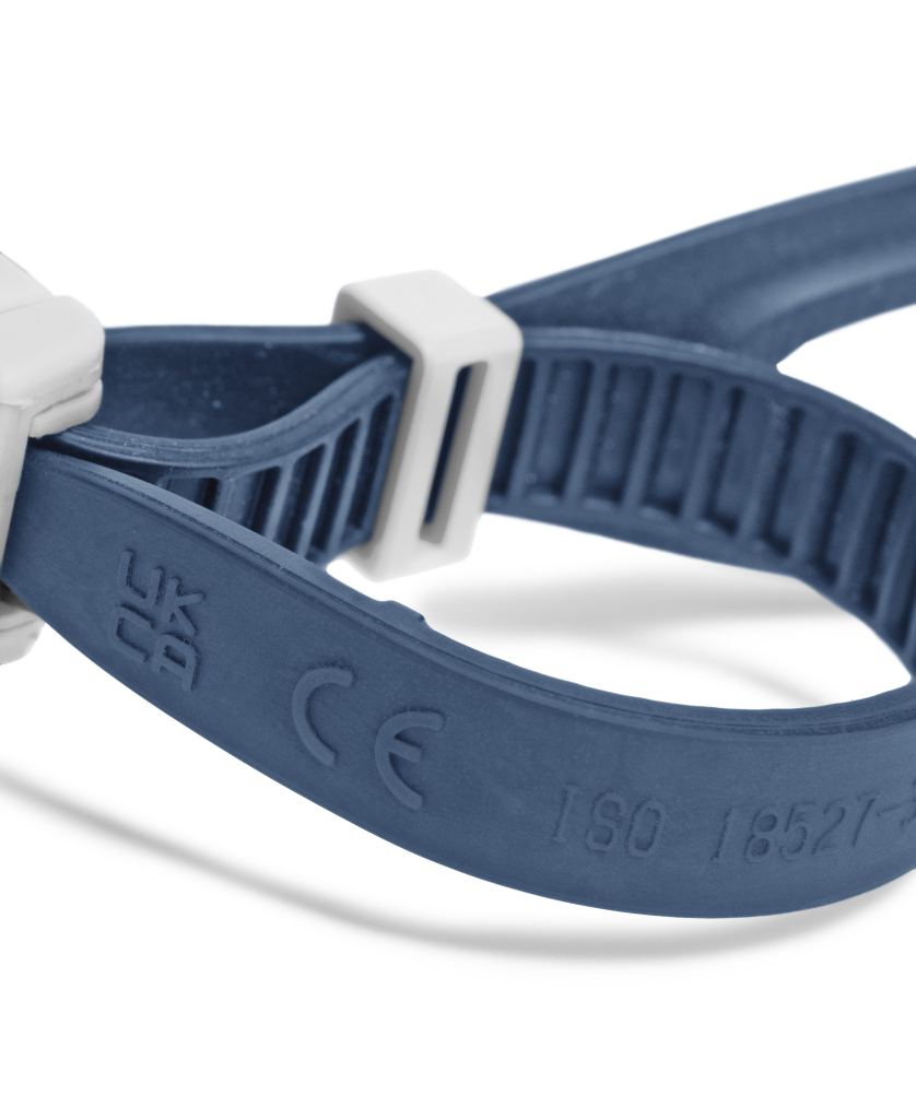 Stromlinienförmiges Design für optimale seitliche Sicht. Das geteilte Kopfband lässt sich leicht anpassen. Mit UV-Schutz.