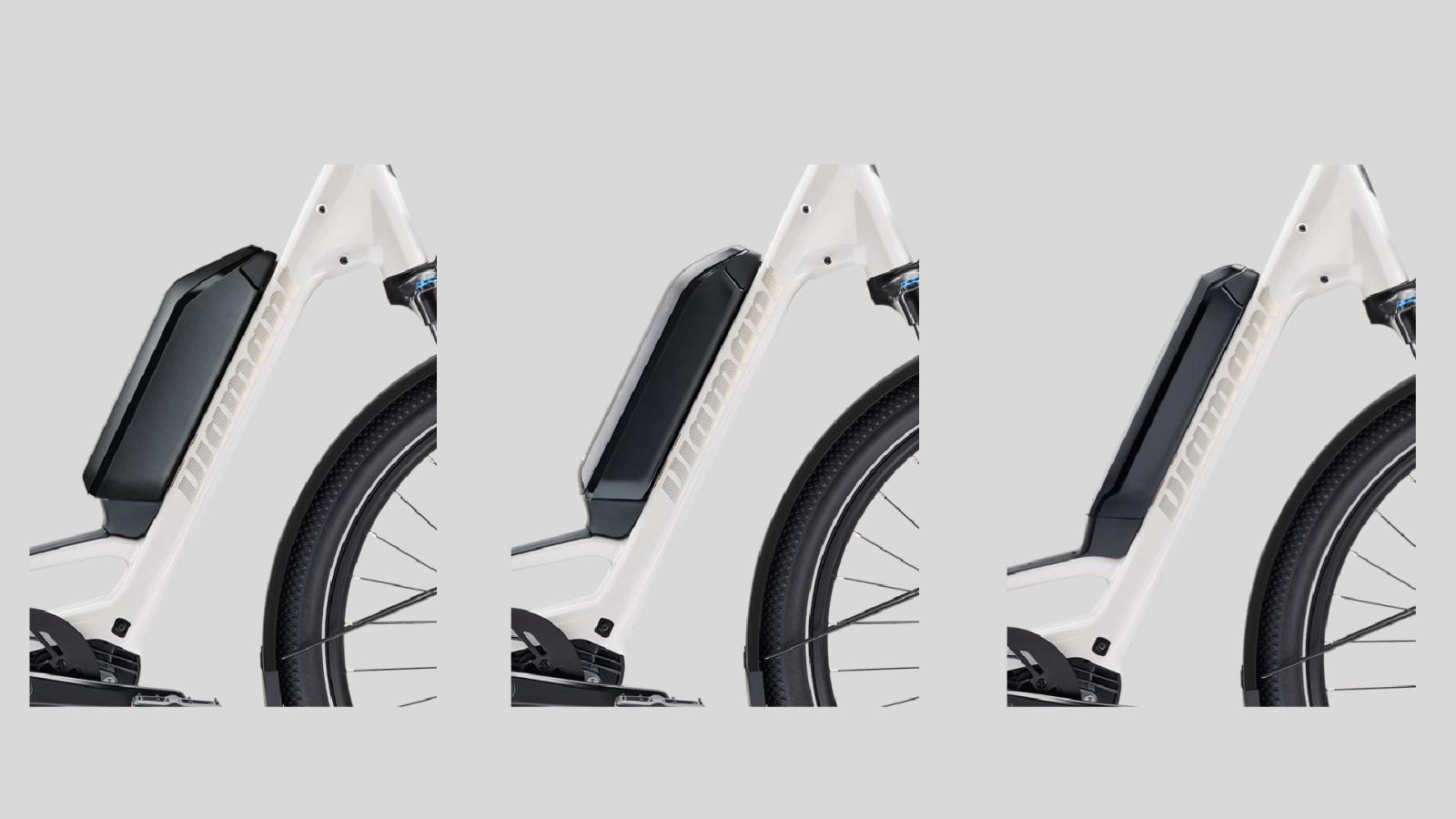Mit dem Diamant Zing haben Sie die Wahl: Unterschiedliche Akkuoptionen reduzieren das Gewicht, erh�hen die Reichweite oder bieten einen durchdachten Kompromiss aus beidem. Bis zu ca. 2 kg weniger Gewicht oder ca. 50 km mehr Reichweite: Die Entscheidung liegt bei Ihnen.