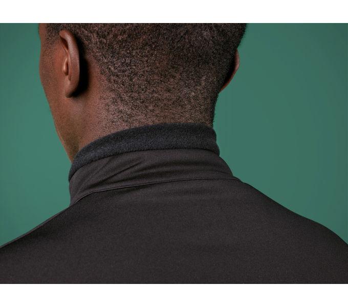 Material: Hauptmaterial: 89% Polyester, 11% Elastan; Kragen: 100% Polyester