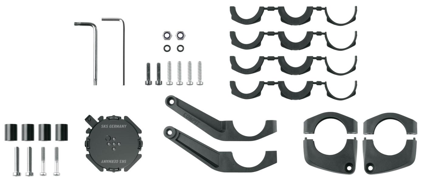 Einer für alle: Die Handyhalterung COMPIT lässt sich ganz unkompliziert auf unterschiedlichen Fahrradlenkern montieren. Neben Klemmarmen bietet das Komplettset mit beigelegten Spacern auch die Möglichkeit, den Handyhalter an E-Bikes mit Mittel-Displays zu befestigen, sodass Smartphone und Bordcomputer eine geschlossene Einheit am Lenker bilden. Mit einem Dreh lässt sich das Smartphone horizontal oder vertikal am Bajonettverschluss anbringen und ebenso schnell wieder abnehmen. Zusätzlich kann es durch die Winkeleinstellung in die gewünschte Position gebracht werden. Selbst in ruppigem Gelände hält COMPIT das Handy fest und sicher. Hinweis: Ein COMPIT-Cover/Tasche wird benötigt! Nur für Bosch Nyon bis 2020 kompatibel.