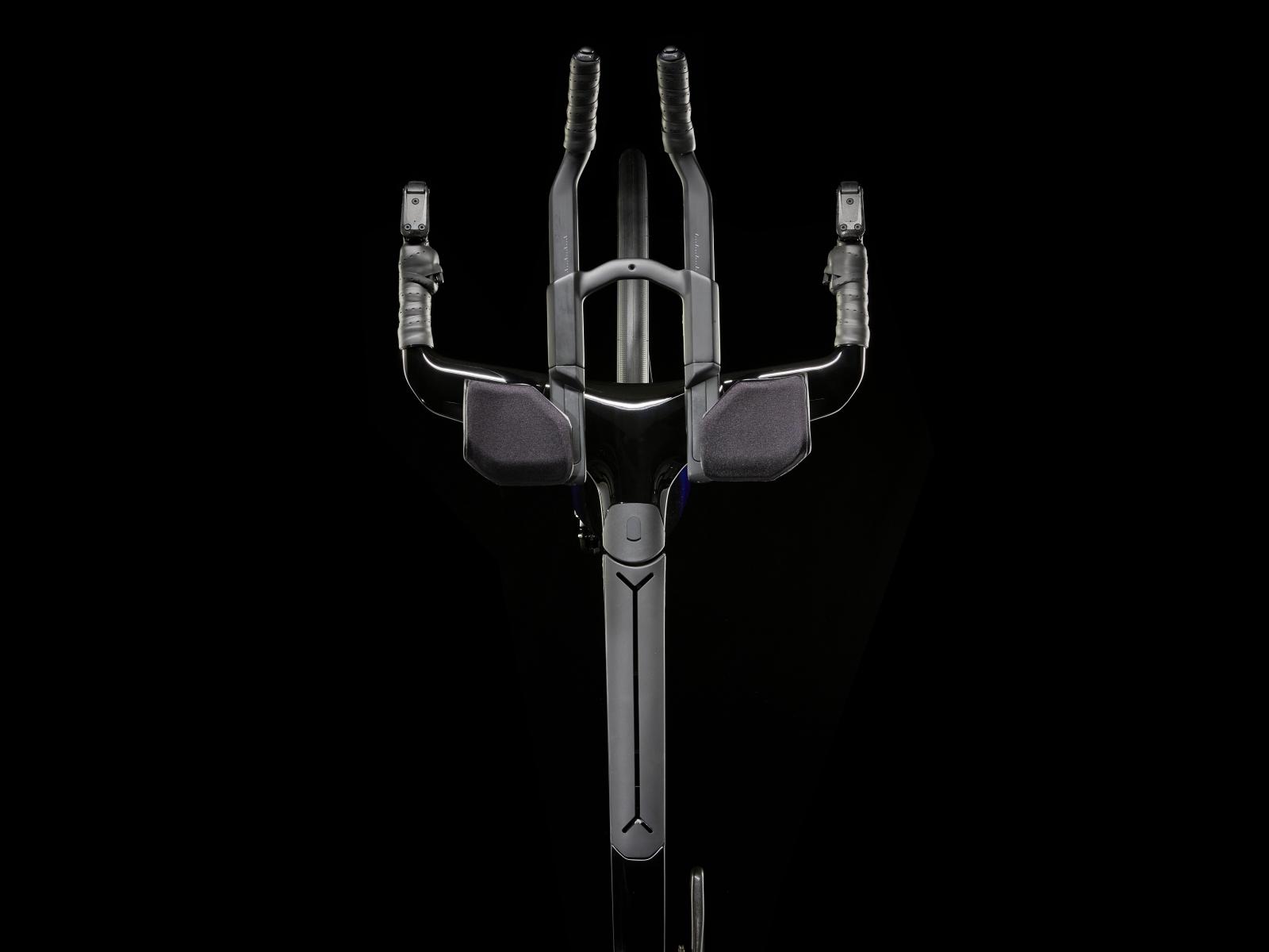 Einen ultraleichten Rahmen aus 800 Series OCLV Carbon, windschnittige Rohre mit Kammtail Virtual Foil-Profil (KVF), eine Speed Concept-Carbongabel mit aerodynamischem Profil, vibrationsdämpfendes IsoSpeed, integrierte Aufbewahrungslösungen für Verpflegung, Flüssigkeit und Pannenkit, einen drahtlosen, elektronischen SRAM Force AXS D2 12fach-Antrieb mit SRAM AXS Clics-Schalthebeln, einen SRAM Force AXS-Powermeter, einen vollständig integrierten Lenker samt Vorbau, einen triathlonspezifischen Bontrager Hilo Comp-Sattel für eine aggressive Aero-Sitzposition, Scheibenbremsen für zuverlässige Bremsleistung und Bontrager Aeolus Pro 51-