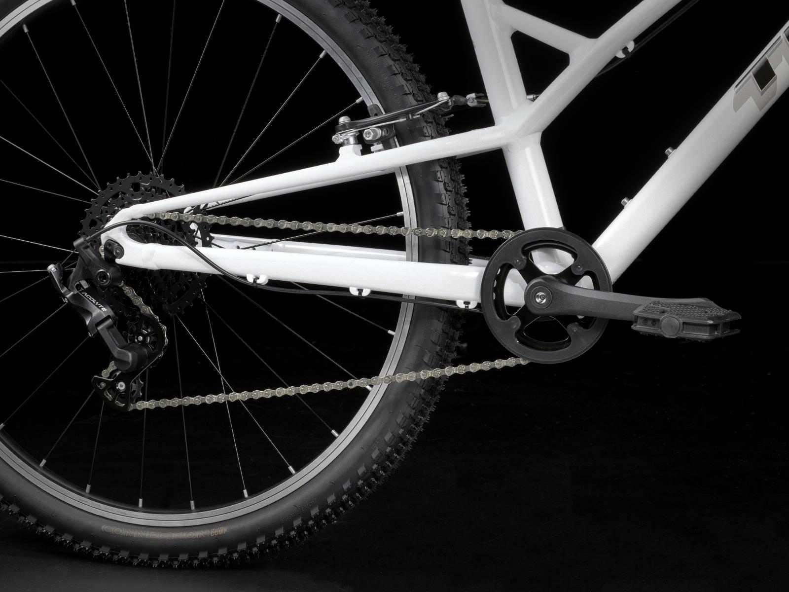 Einen Rahmen aus Alpha Silver Aluminium mit 26 Zoll großen Laufrädern und 2 Zoll breiten Reifen, die für Grip und Geschwindigkeit auf Asphalt konzipiert sind. Dazu gibt es eine speziell auf Kinderbedürfnisse zugeschnittene Ausstattung, wie etwa die intuitive 8-Gang-Schaltung von microSHIFT und unkomplizierte Felgenbremsen samt kindgerechten Bremshebeln.
